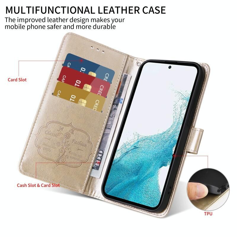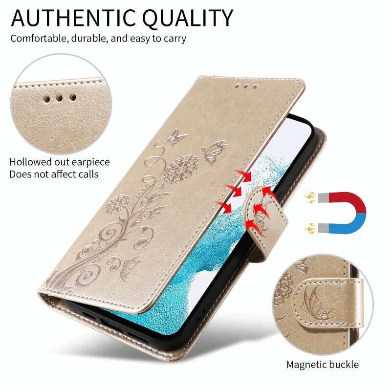 Θήκη τηλεφώνου Samsung Galaxy M54 5G από δέρμα με ανάγλυφα σχέδια πεταλούδας και λουλουδιών (Μωβ)