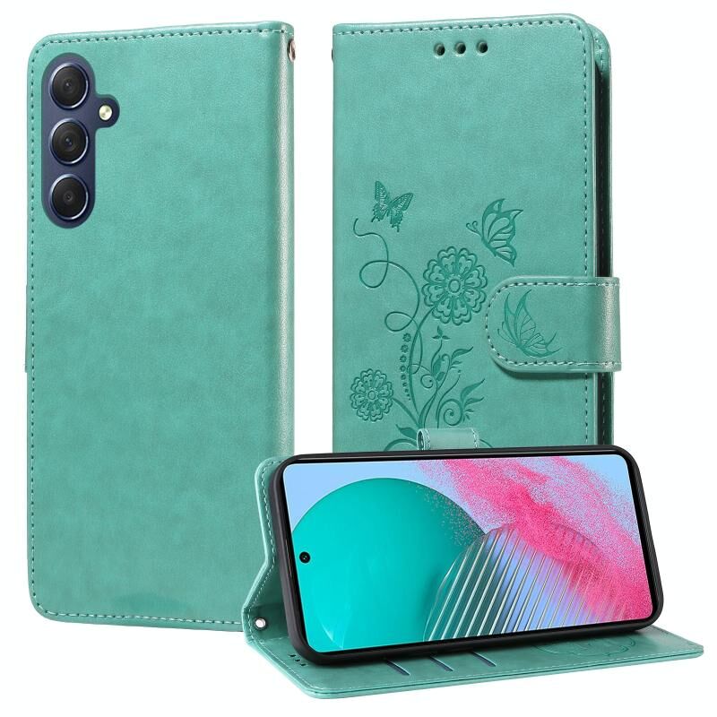 Θήκη τηλεφώνου Samsung Galaxy M54 5G από δέρμα με ανάγλυφα σχέδια πεταλούδας και λουλουδιών (Μωβ)
