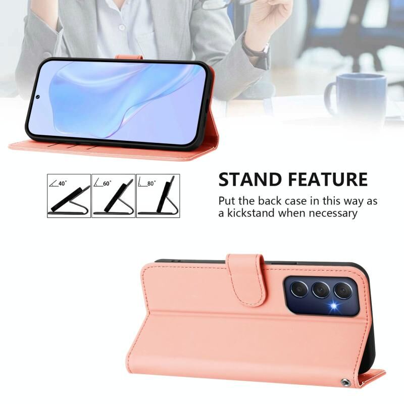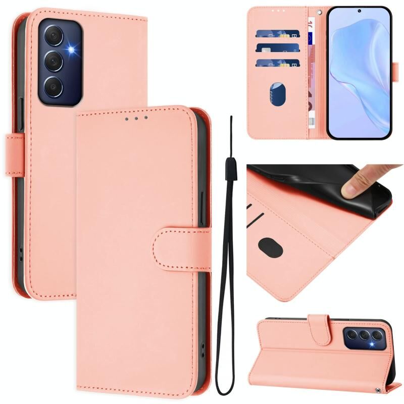 Για το Samsung Galaxy M54 5G / F54 5G δέρμα αίσθηση στερεό χρώμα δερμάτινη θήκη τηλεφώνου με κορδόνι (ροζ)