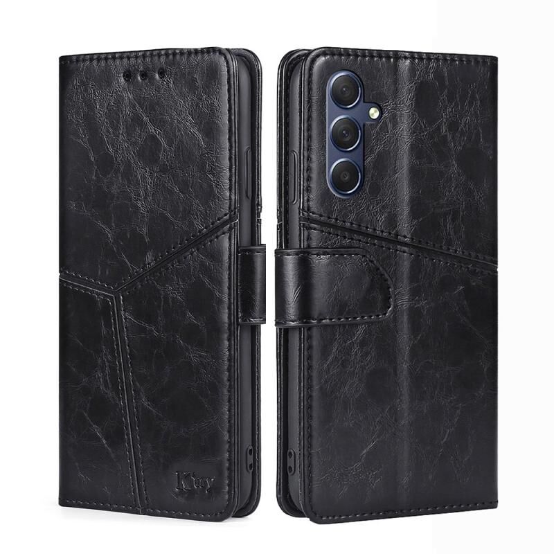 Για Samsung Galaxy M54 5G γεωμετρική ραφή δερμάτινη θήκη τηλεφώνου (μαύρο)