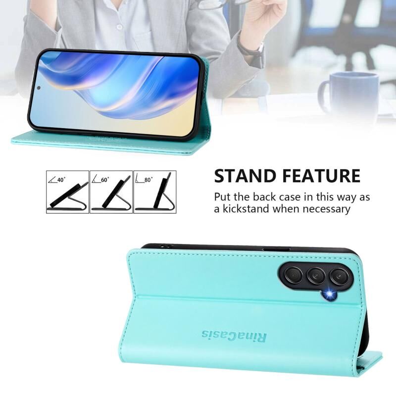 Θήκη τηλεφώνου δέρματινη με μαγνητική απορρόφηση και διπλή πτύχωση για Samsung Galaxy M54 5G Global / F54 RC01 (Μέντας Πράσινο)