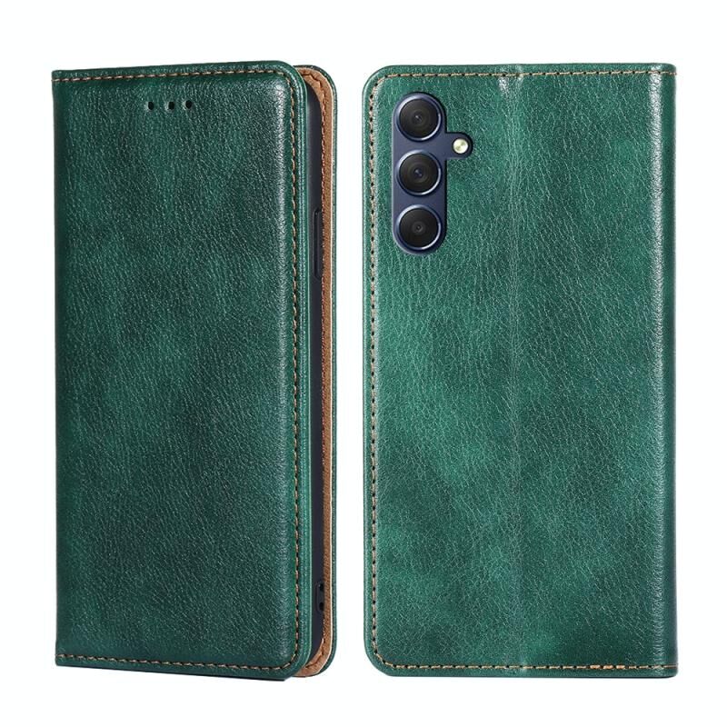 Για το Samsung Galaxy M54 5G Γυαλιστερό λάδι στερεό χρώμα μαγνητική δερμάτινη θήκη τηλεφώνου (πράσινο)