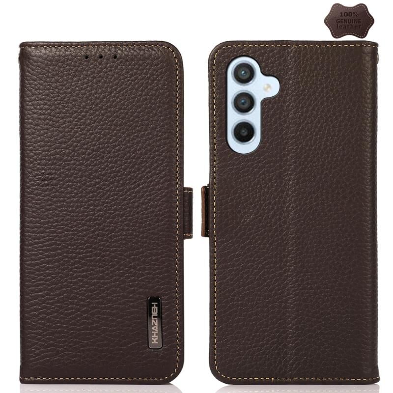 Θήκη κινητού τηλεφώνου Samsung Galaxy M54 5G KHAZNEH με μαγνητικό κλείσιμο, από γνήσιο δέρμα Litchi με προστασία RFID (Καφέ)