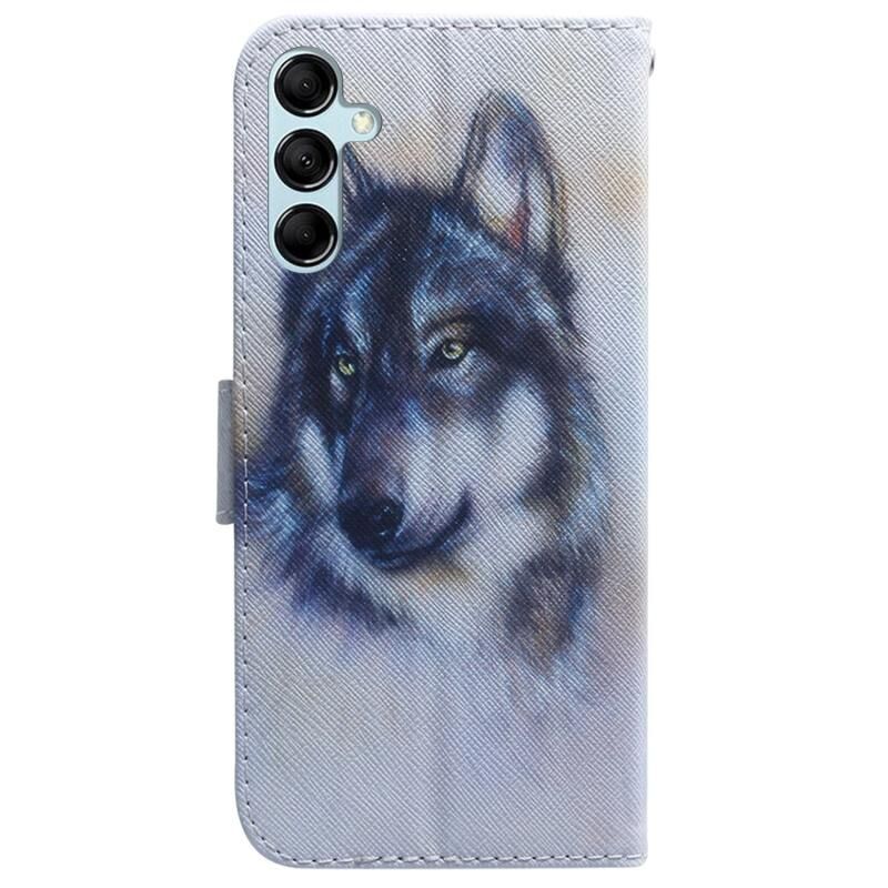 Θήκη τηλεφώνου Samsung Galaxy M54 με σχέδιο σε χρώμα και δέρμα τύπου flip (Λευκός Λύκος)