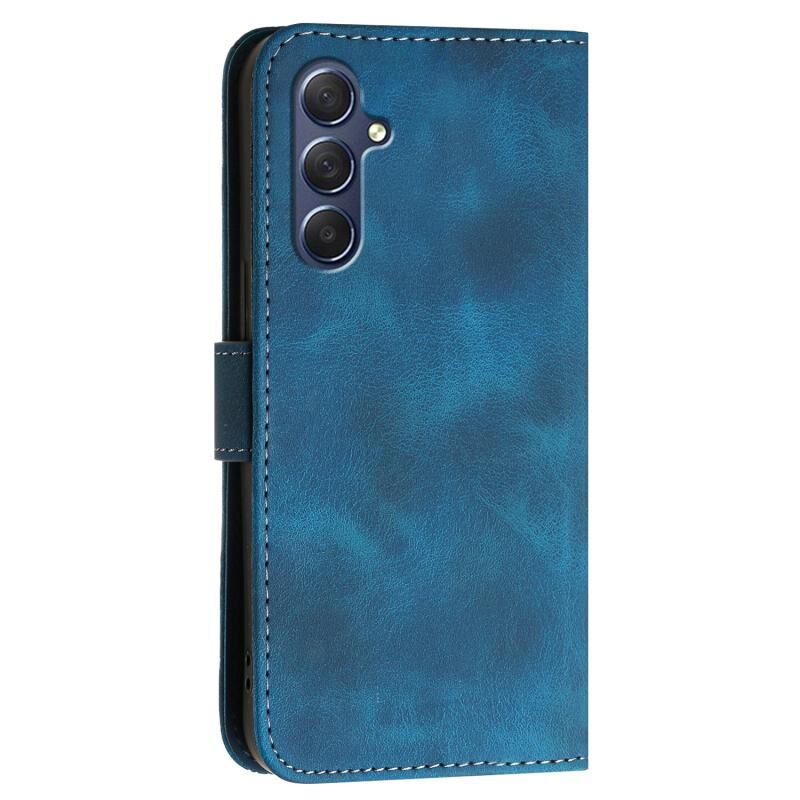 Θήκη τηλεφώνου Samsung Galaxy M54 YX0080 από δέρμα με σχέδιο ανάγλυφου πλέγματος και πεταλούδας, με λουρί (Σκούρο μπλε)