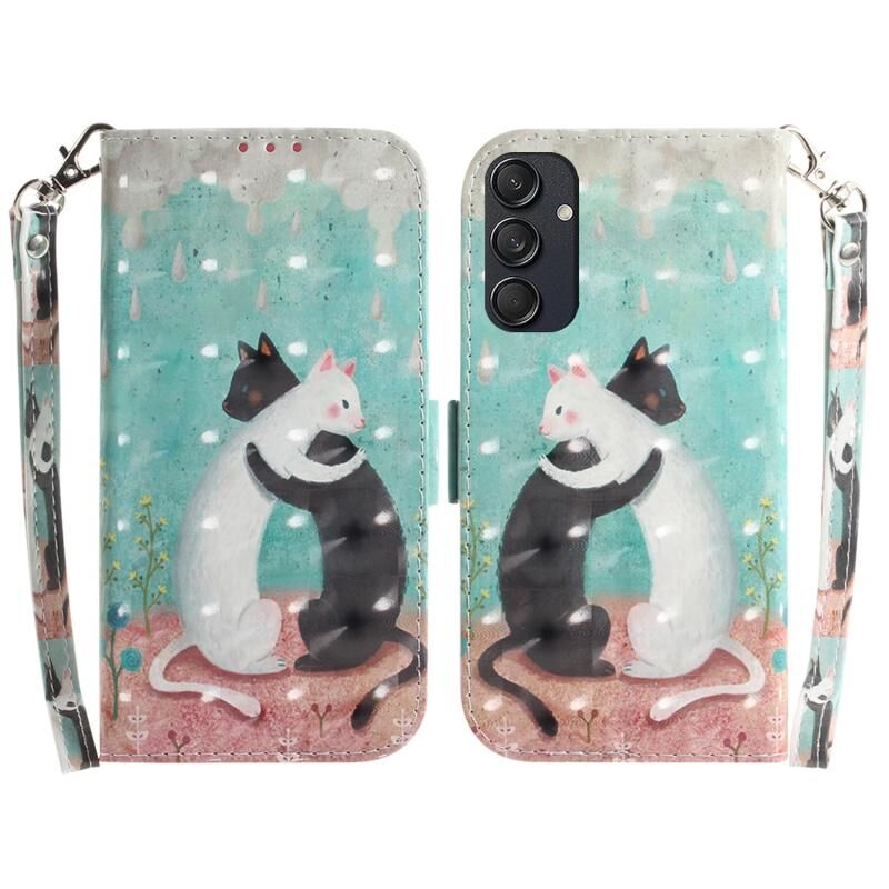 Θήκη τηλεφώνου Samsung Galaxy M55 3D πολύχρωμη οριζόντια δερμάτινη (Μαύρη Λευκή Γάτα)