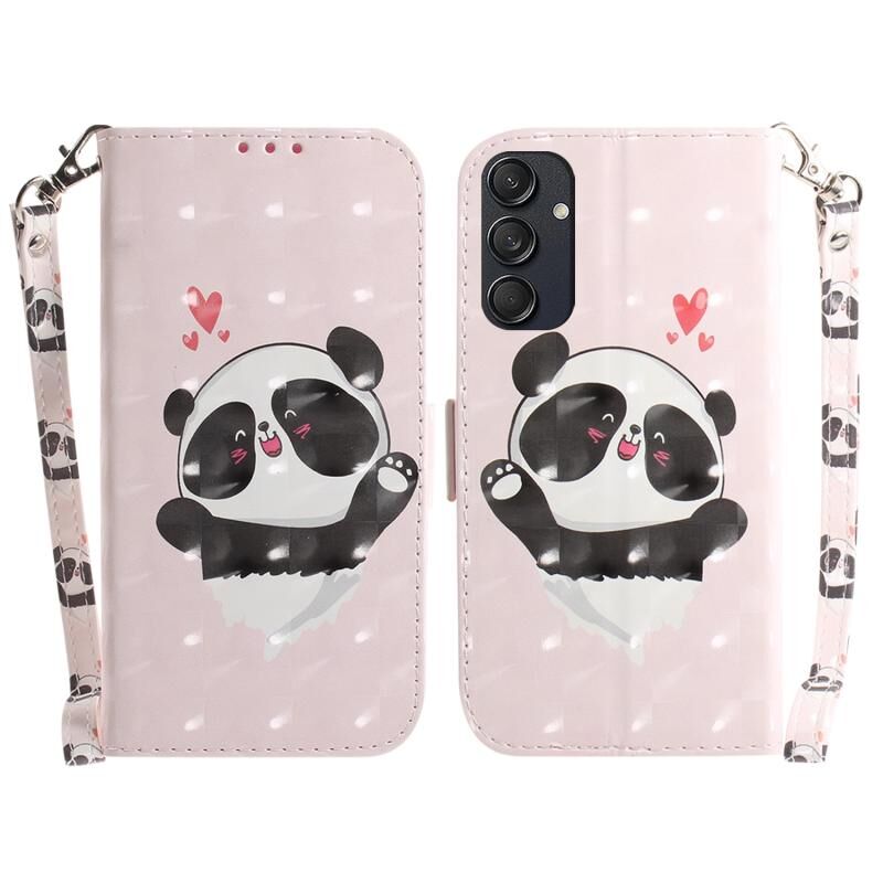 Θήκη τηλεφώνου Samsung Galaxy M55 3D πολύχρωμη οριζόντια δερμάτινη (Heart Panda)