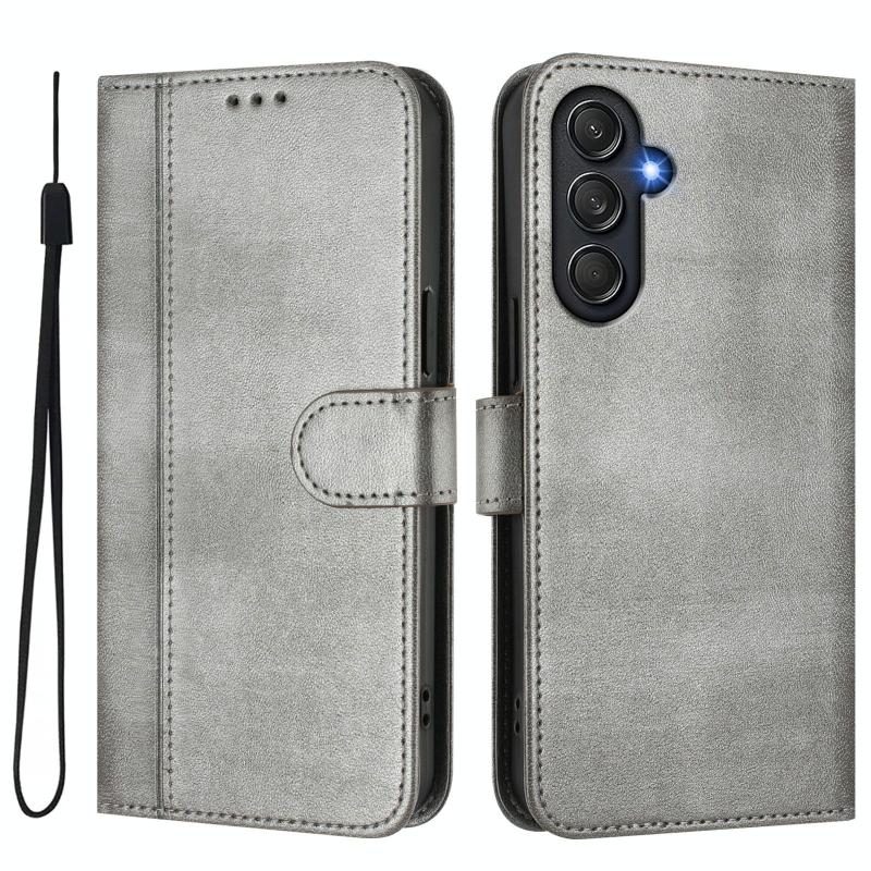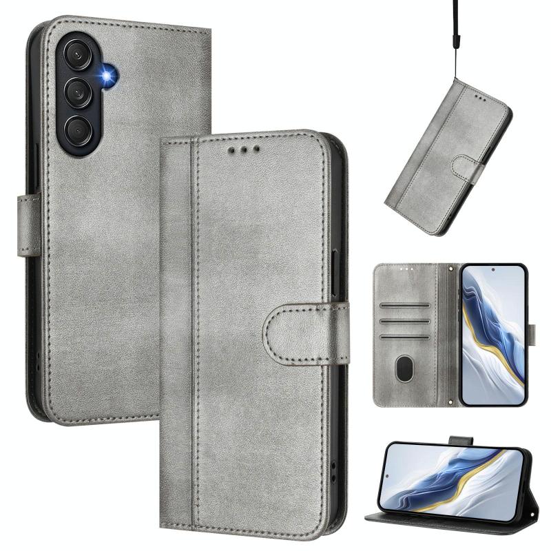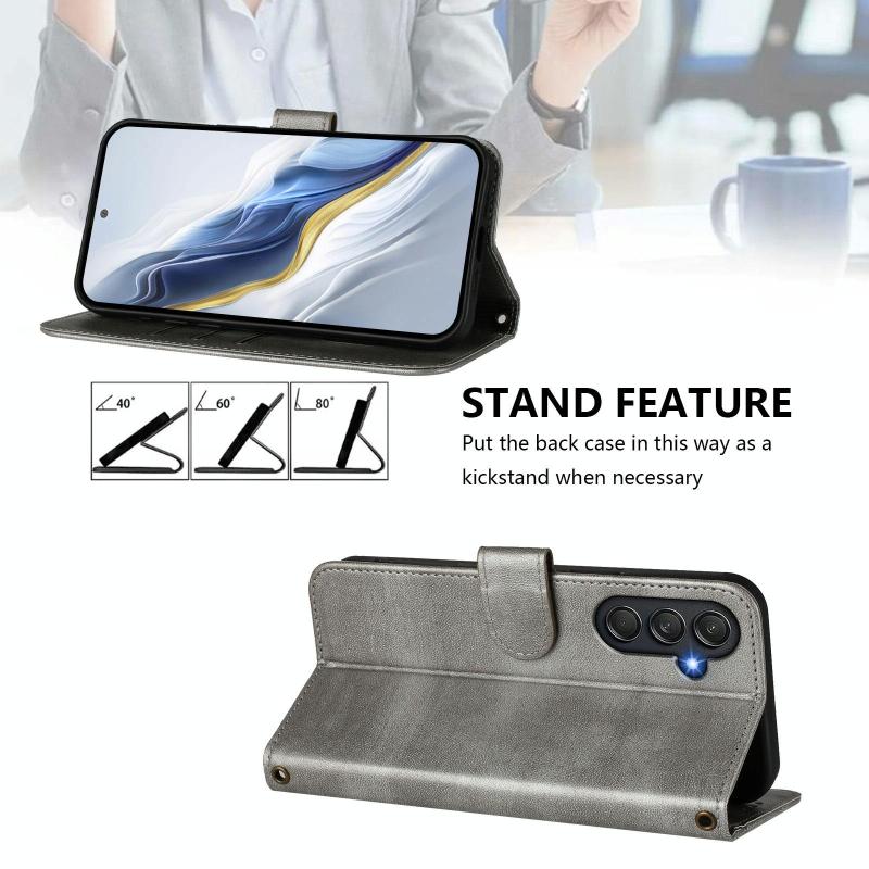 For Samsung Galaxy M55 5G / C55 5G Line Splicing Buckle Retro Leather Phone Case(Grey)