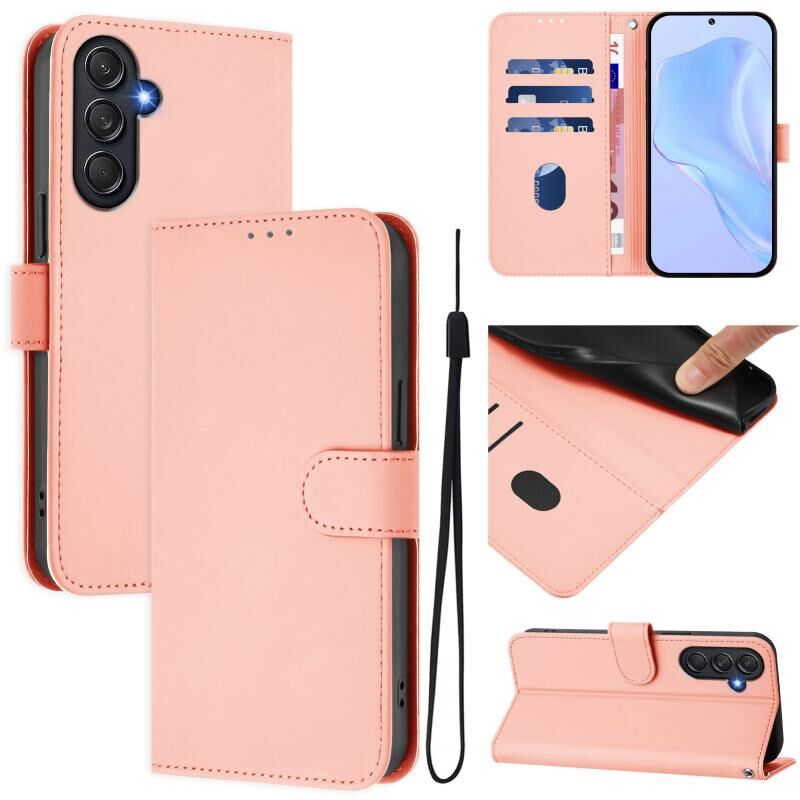 Για το Samsung Galaxy M55 5G / C55 5G δέρμα αίσθηση στερεό χρώμα δερμάτινη θήκη τηλεφώνου με κορδόνι (ροζ)