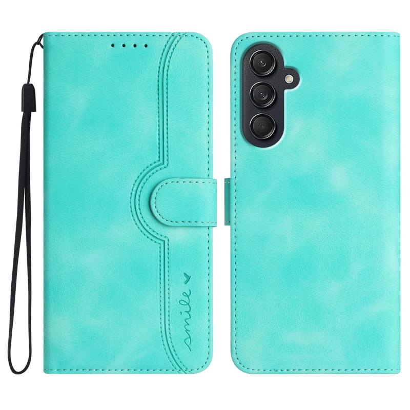 Θήκη τηλεφώνου Samsung Galaxy M55 5G με σχέδιο καρδιάς και υφή δέρματος (Ανοιχτό μπλε)