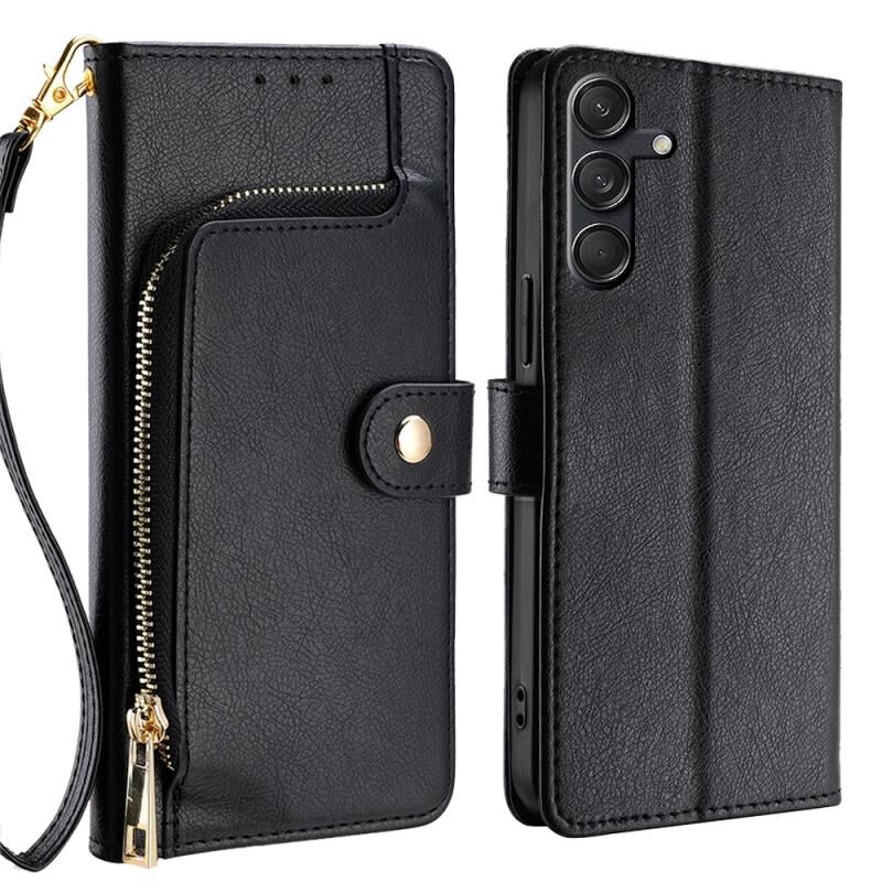 Για Samsung Galaxy M55 5G φερμουάρ τσάντα δερμάτινη θήκη τηλεφώνου (μαύρο)