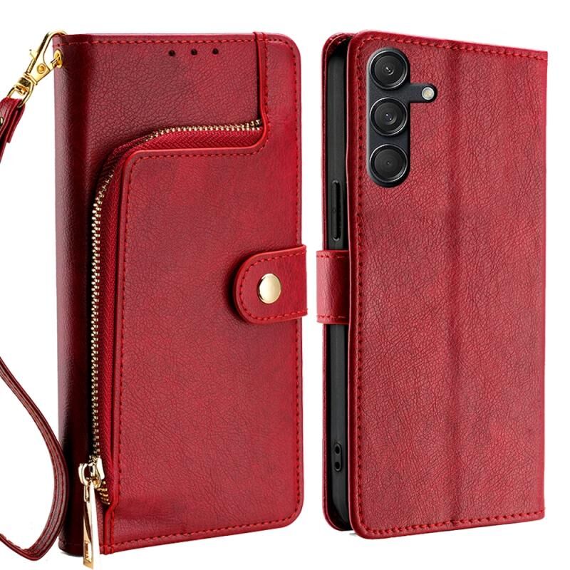 Για Samsung Galaxy M55 5G φερμουάρ τσάντα δερμάτινη θήκη τηλεφώνου (κόκκινο)