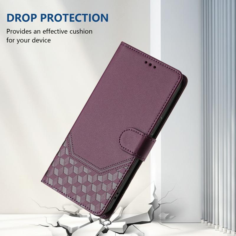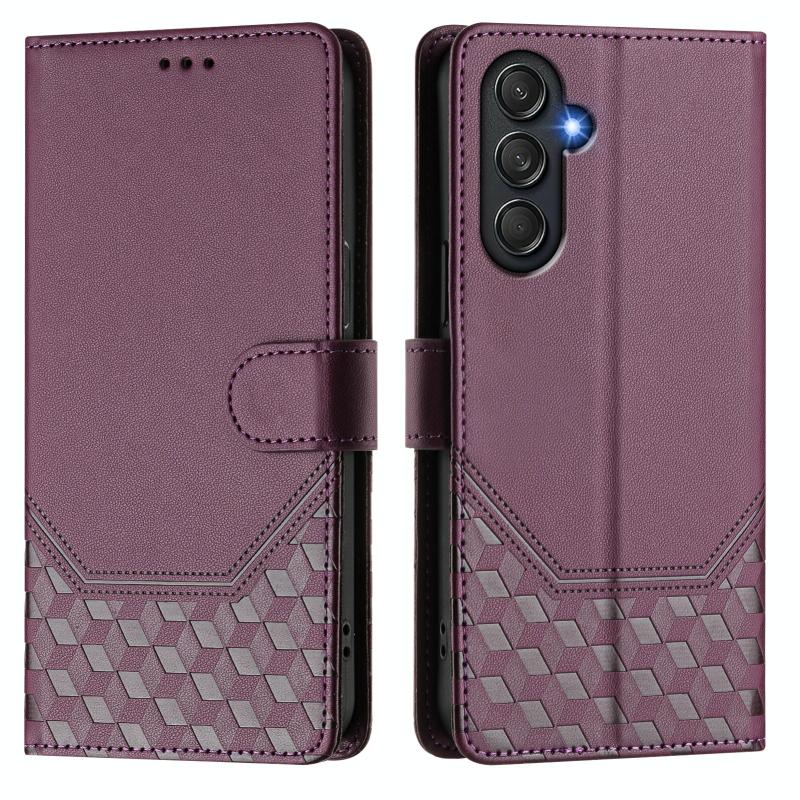 Θήκη τηλεφώνου Samsung Galaxy M55 / C55 5G από δέρμα με ανάγλυφο κηρήθρας και προστασία RFID (Μωβ)
