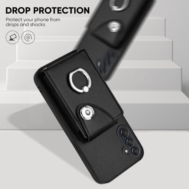 Για Samsung Galaxy M55 / C55 5G Οργανική κάρτα τσάντα τσάντα δαχτυλίδι κάτοχος υπόθεση τηλεφώνου με μακρύ κορδόνι (μαύρο)
