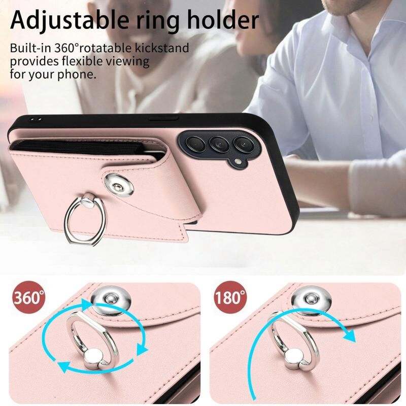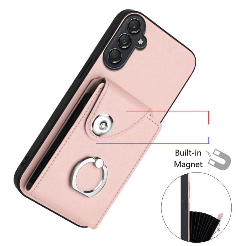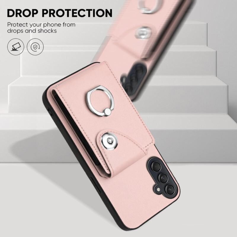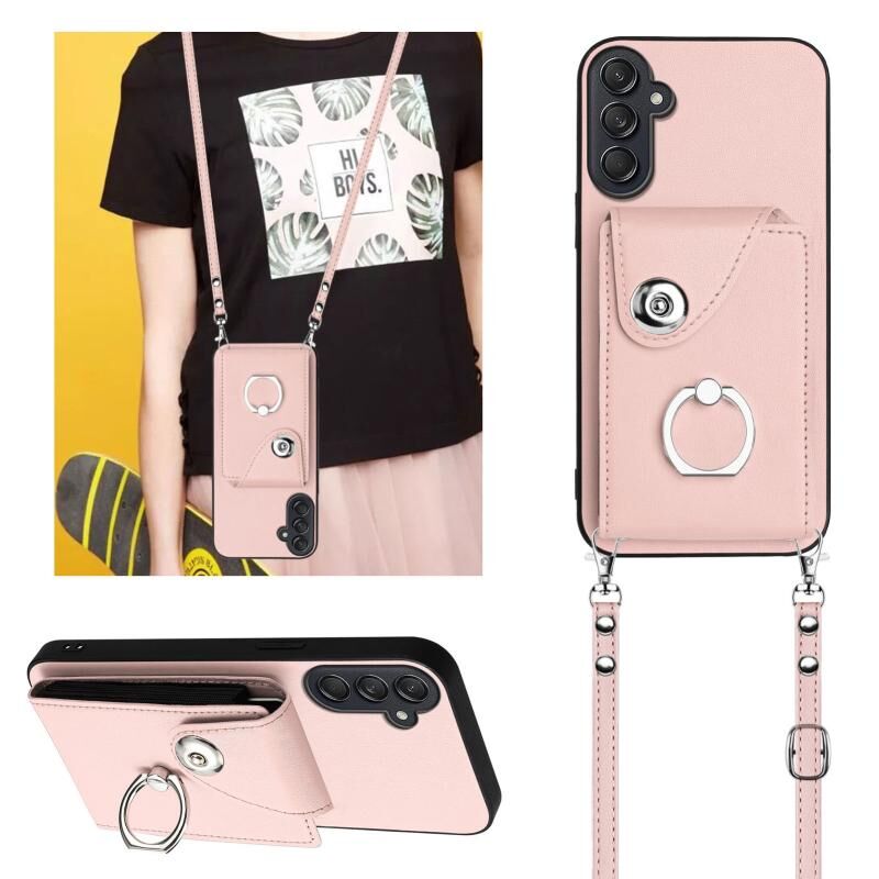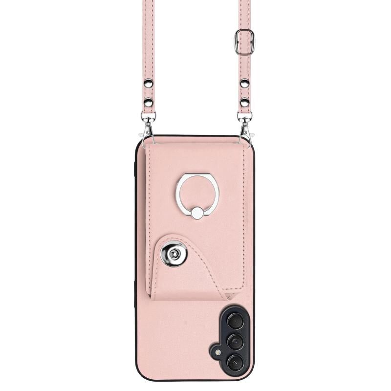 Για Samsung Galaxy M55 / C55 5G Οργανική κάρτα τσάντα τσάντα δαχτυλίδι κάτοχος υπόθεση τηλεφώνου με μακρύ κορδόνι (ροζ)