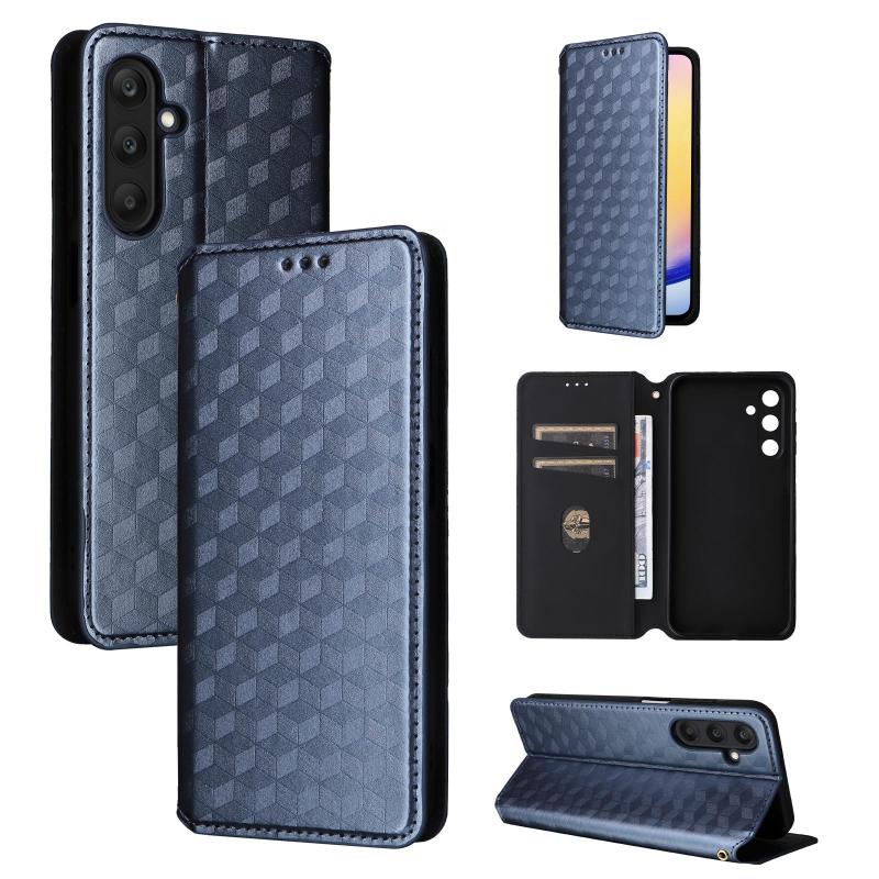 For Samsung Galaxy M55 / C55 Cubic Grid Texture Flip Leather Phone Case(Blue)
