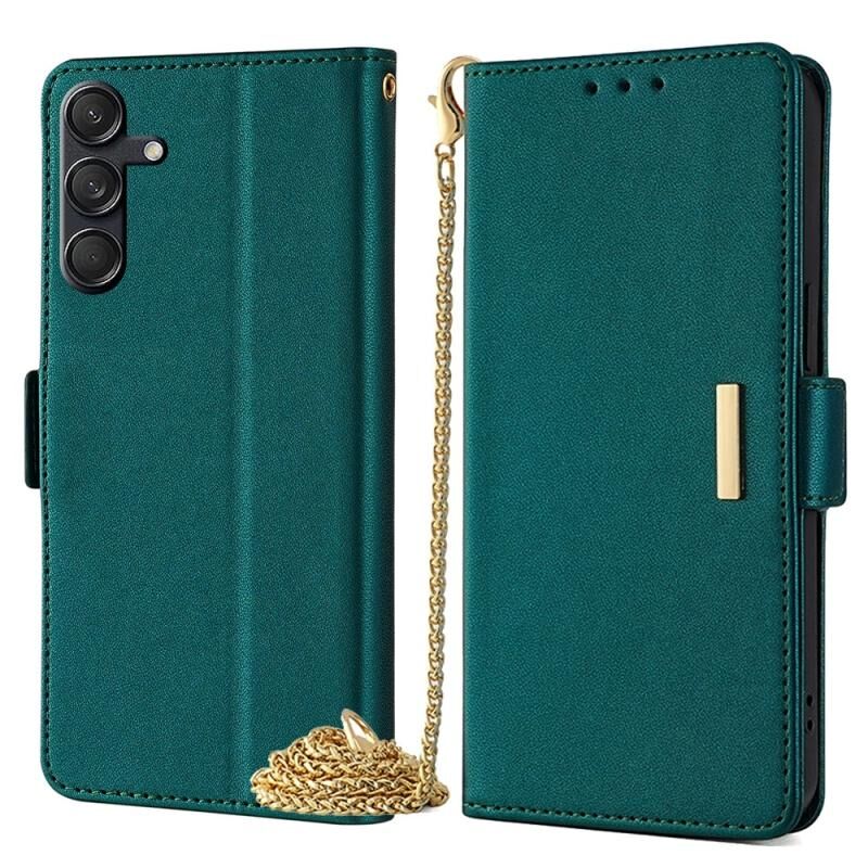 Θήκη τηλεφώνου Samsung Galaxy M55 με αλυσίδα και δέρμα (πράσινο)
