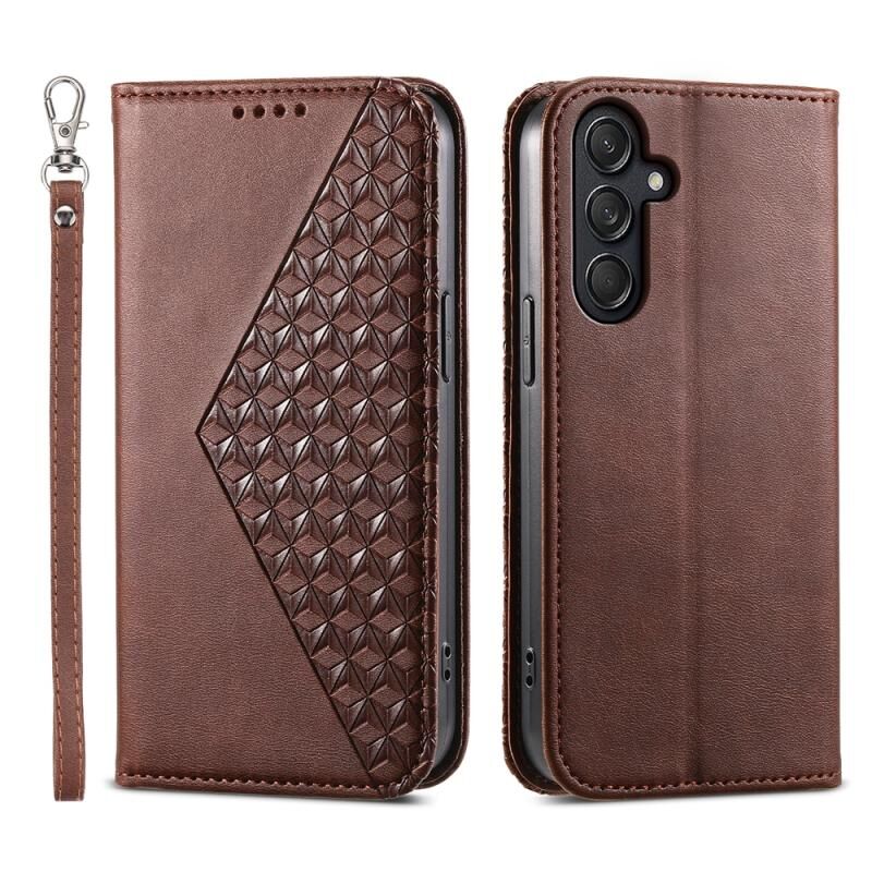 Για Samsung Galaxy M55 Cubic Grid Calf υφή μαγνητική δερμάτινη θήκη τηλεφώνου (καφέ)