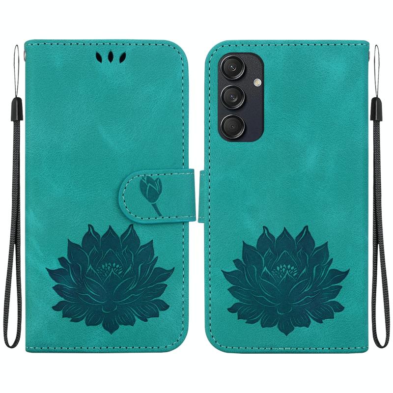 For Samsung Galaxy M55 Lotus Embossed Leather Phone Case(Green)