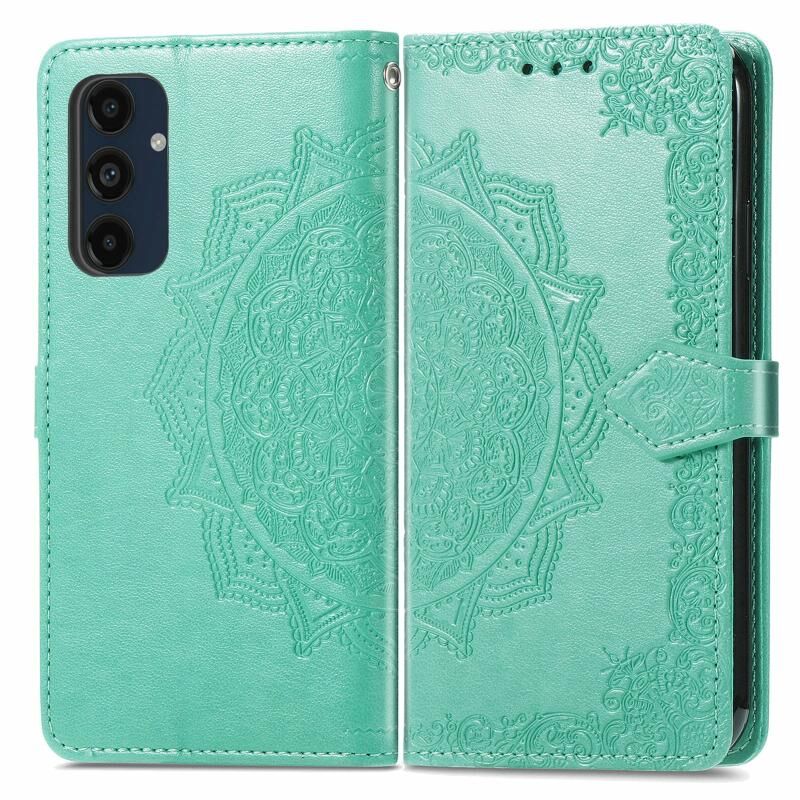 Για Samsung Galaxy M55 Mandala λουλούδι ανάγλυφο δερμάτινη θήκη τηλεφώνου (πράσινο)