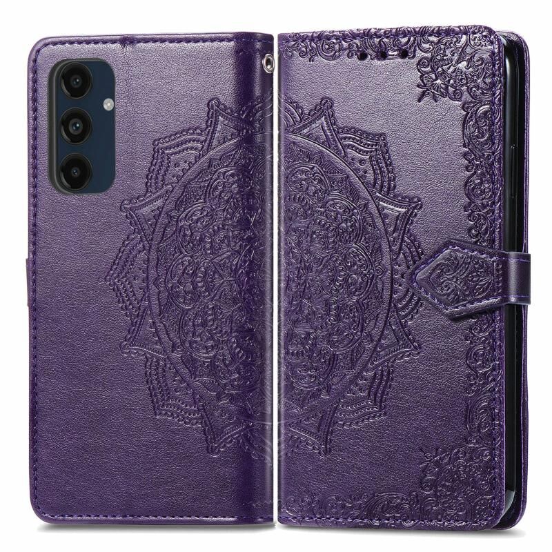 Για Samsung Galaxy M55 Mandala λουλούδι ανάγλυφο δερμάτινη θήκη τηλεφώνου (μωβ)