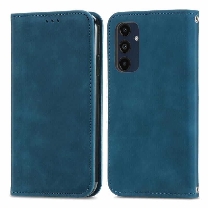 Για το Samsung Galaxy M55 Retro δέρμα αίσθηση μαγνητική δερμάτινη θήκη τηλεφώνου (μπλε)