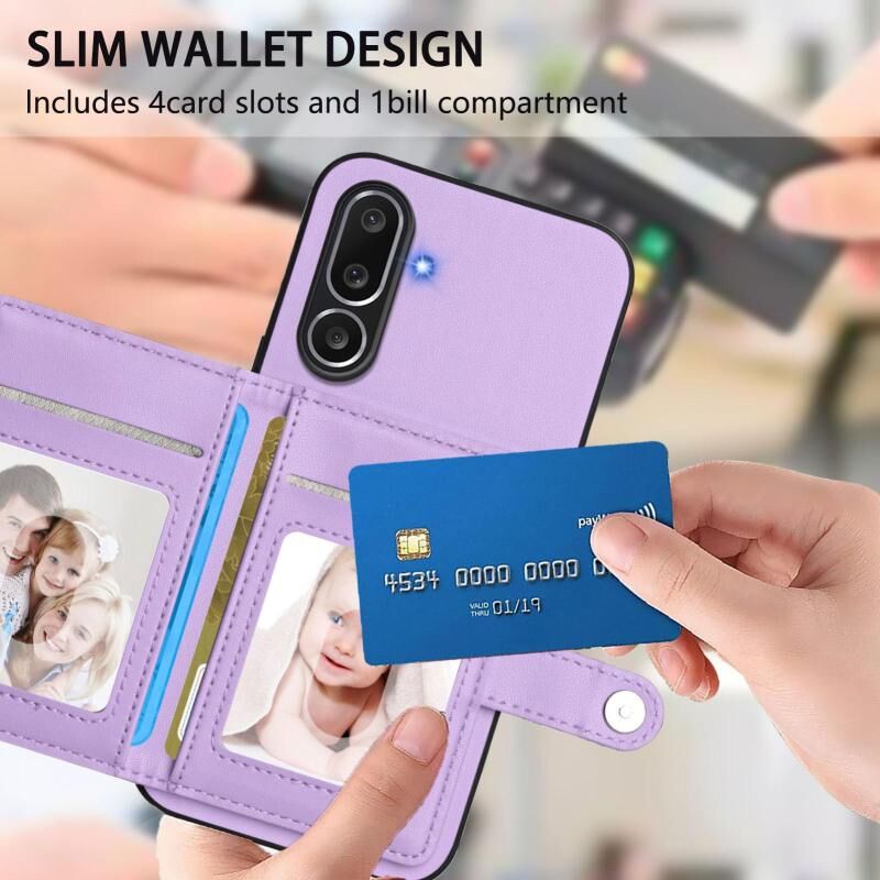 Θήκη κινητού τηλεφώνου με κάρτες και προστασία RFID κατά της κλοπής για Samsung Galaxy M56 5G (Μωβ)