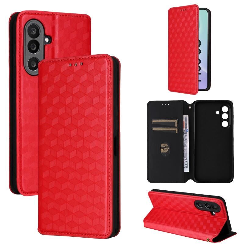 For Samsung Galaxy M56 5G Cubic Grid Texture Flip Leather Phone Case(Red)