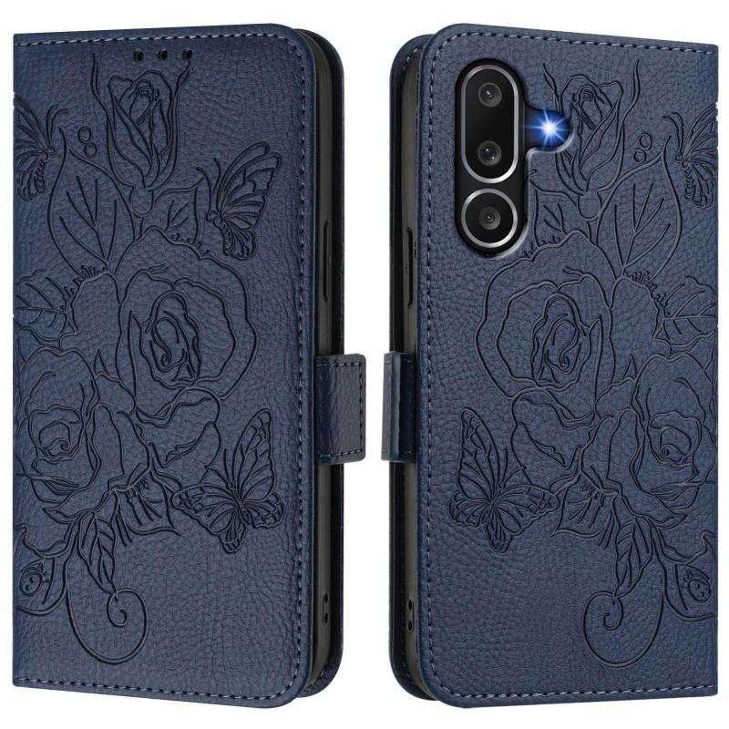 For Samsung Galaxy M56 5G Embossed Rose RFID Anti-theft Leather Phone Case(Dark Blue)
