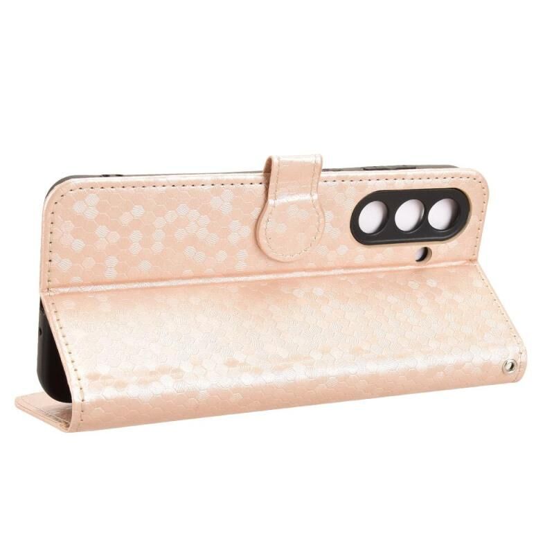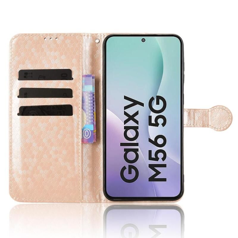 Θήκη τηλεφώνου Samsung Galaxy M56 5G από δέρμα με υφή κυψελωτού δικτύου (Χρυσός)