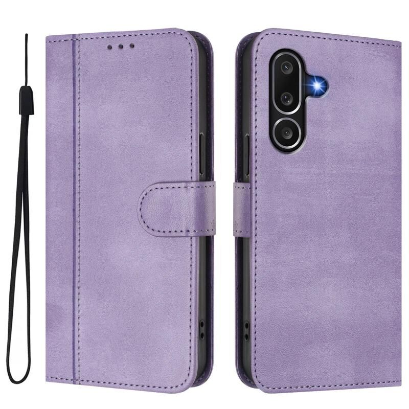 For Samsung Galaxy M56 5G Line Splicing Buckle Retro Leather Phone Case(Purple)