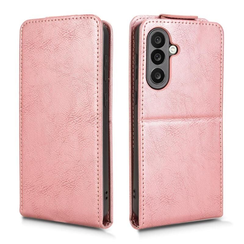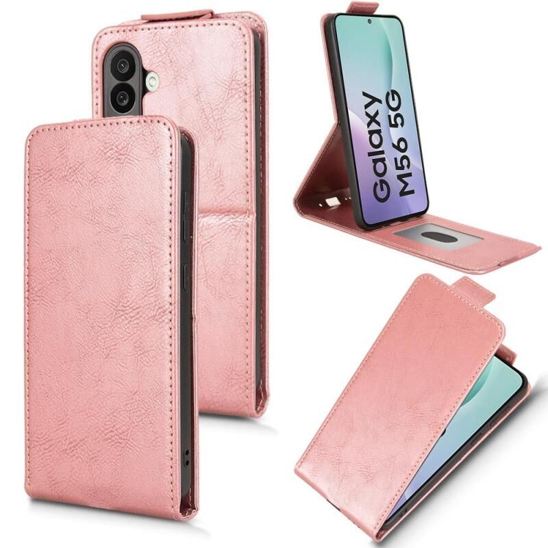 For Samsung Galaxy M56 5G Magnetic Vertical Flip Leather Phone Case with Buckle(Rose Gold)