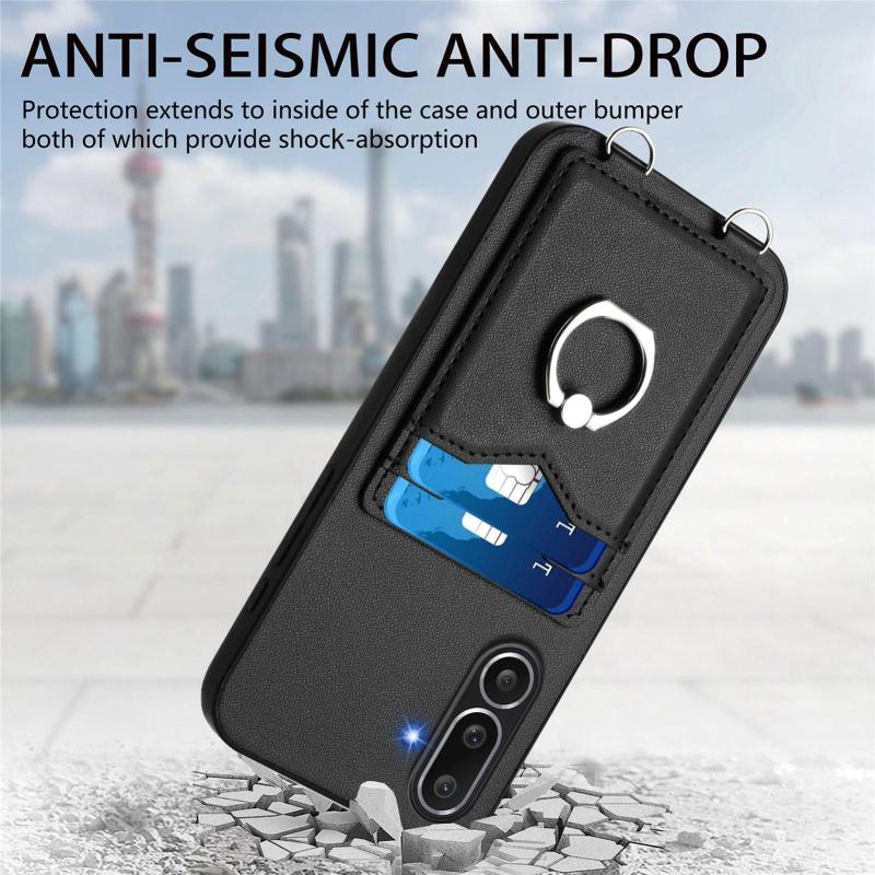 For Samsung Galaxy M56 5G R20 Ring Card Holder Phone Case(Black)