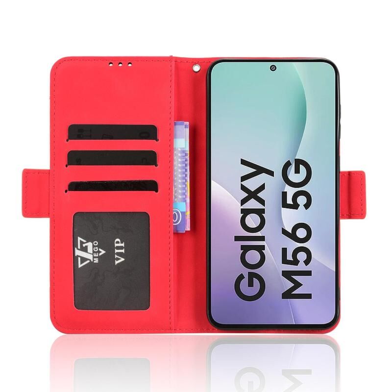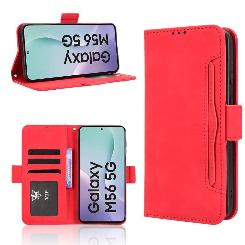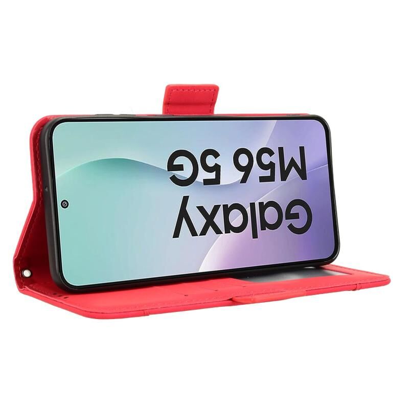 Θήκη τηλεφώνου Samsung Galaxy M56 5G από δέρμα με υφή μοσχαριού, με θήκες για κάρτες (Κόκκινο)