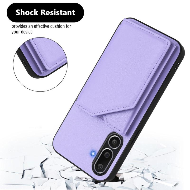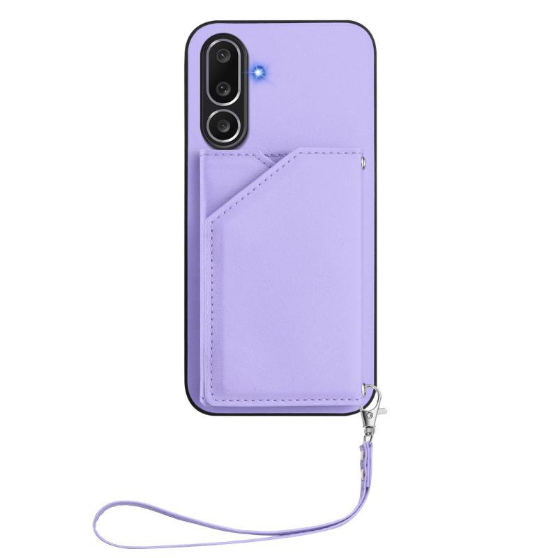 For Samsung Galaxy M56 5G Skin Feel Four Card Slots Phone Case with Wrist Strap(Purple)