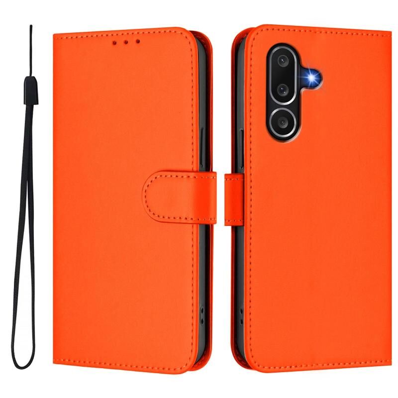 For Samsung Galaxy M56 5G Skin Feel Solid Color Leather Phone Case with Lanyard(Orange)