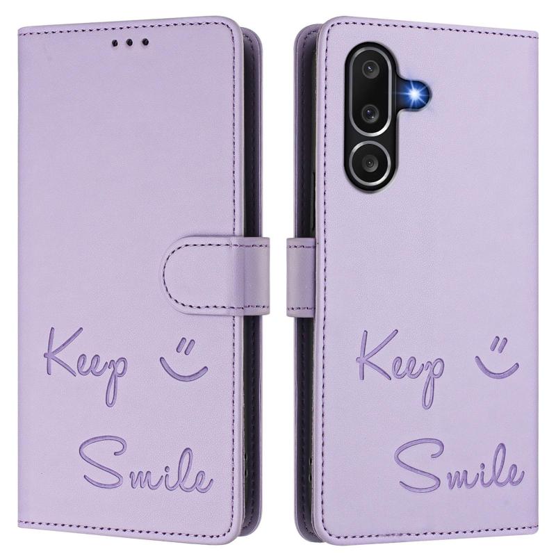 For Samsung Galaxy M56 5G Smile Embossing RFID Leather Phone Case(Light Purple)