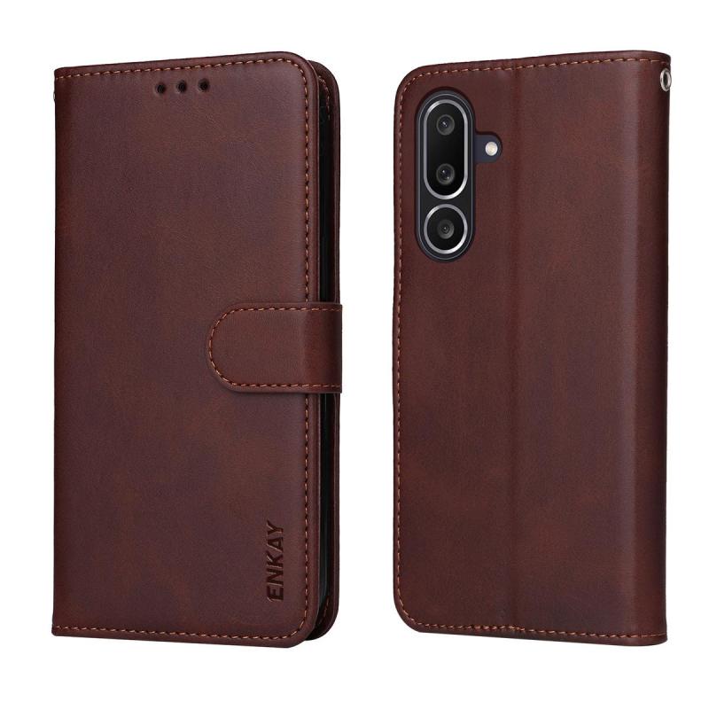 For Samsung Galaxy M56 ENKAY Card Wallet Calf Texture Leather Phone Case with Screen Film(Black) (ENKAY)