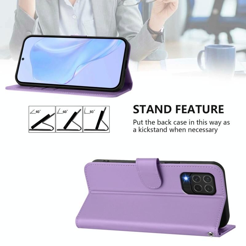 Για το Samsung Galaxy M62 4G / F62 4G δέρμα αίσθηση στερεό χρώμα δερμάτινη θήκη τηλεφώνου με κορδόνι (μωβ λεβάντα)