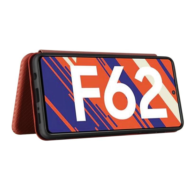 Για Samsung Galaxy M62 Carbon Fiber υφή οριζόντια Flip TPU + PC + PU δέρμα υπόθεση με υποδοχή κάρτας (καφέ)