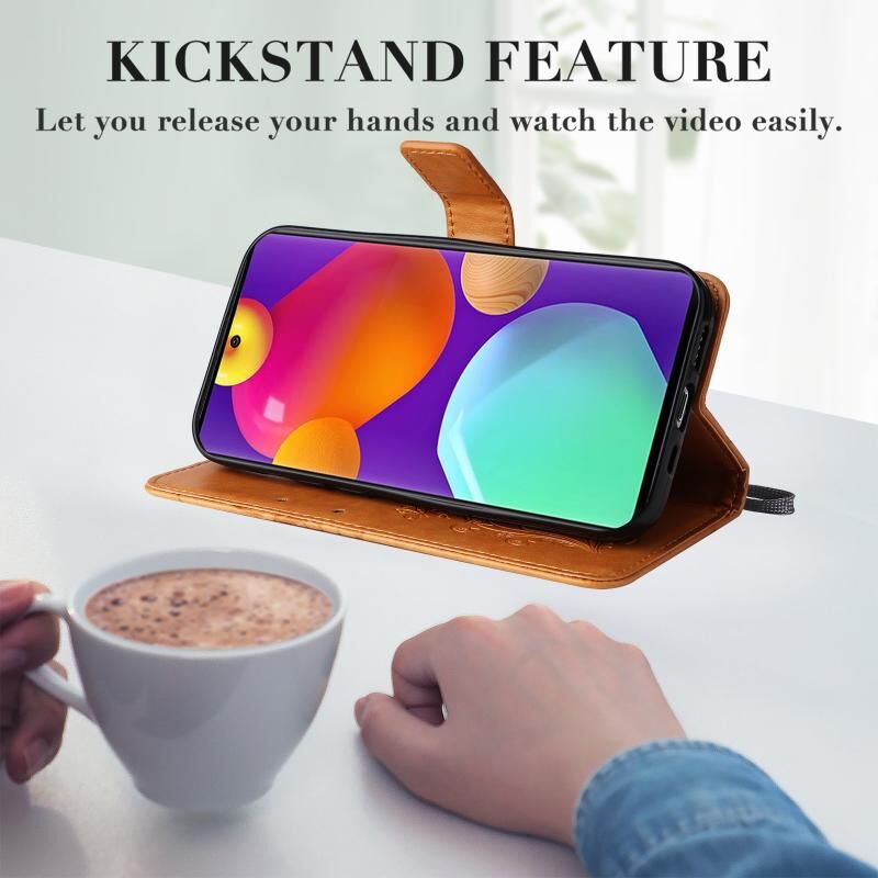 Θήκη τηλεφώνου Samsung Galaxy M62 / F62 3D με ανάγλυφο σχέδιο πεταλούδας, δερμάτινη, τύπου flip (Μωβ)