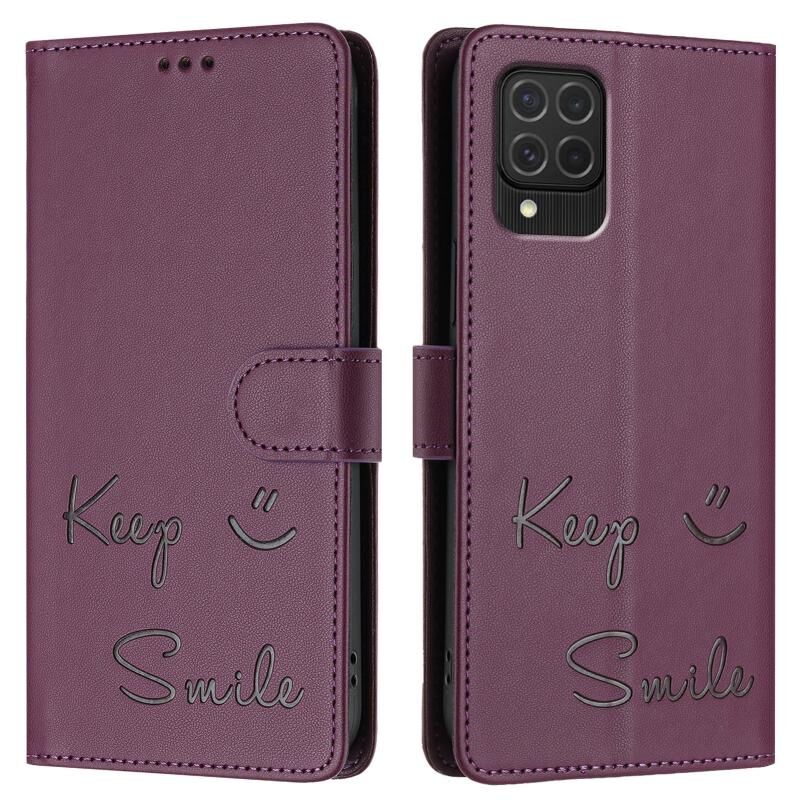 Θήκη τηλεφώνου δερμάτινη με ανάγλυφο χαμόγελο και RFID για Samsung Galaxy M62 / F62 4G (Βιολετί)