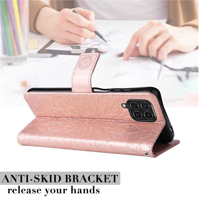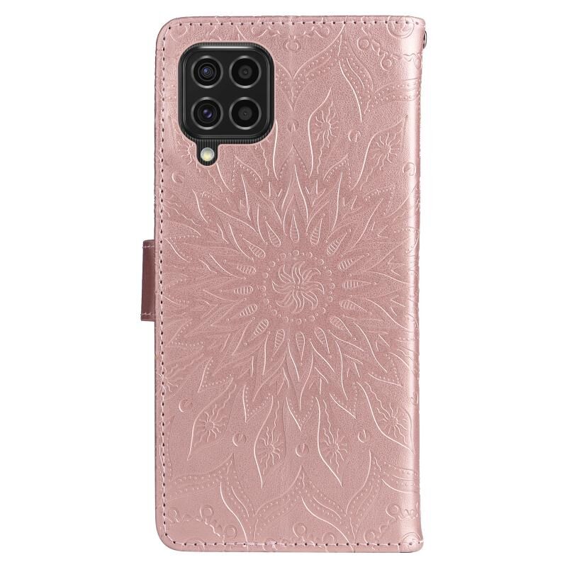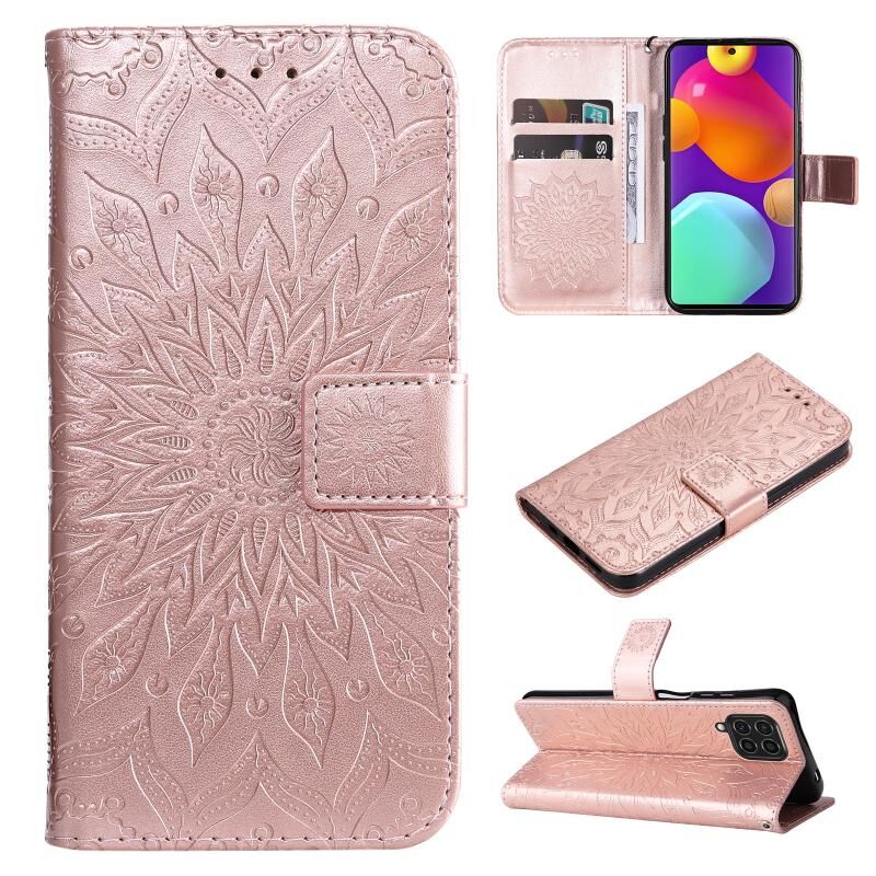 Για Samsung Galaxy M62 / F62 ανάγλυφο ηλιοτρόπιο μοτίβο Flip υπόθεση τηλεφώνου δέρμα (Ροζ χρυσός)