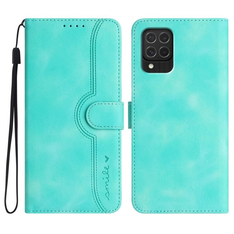 Για το Samsung Galaxy M62 / F62 καρδιά μοτίβο δέρμα δέρμα αίσθηση υπόθεση τηλεφώνου (Ανοιχτό μπλε)