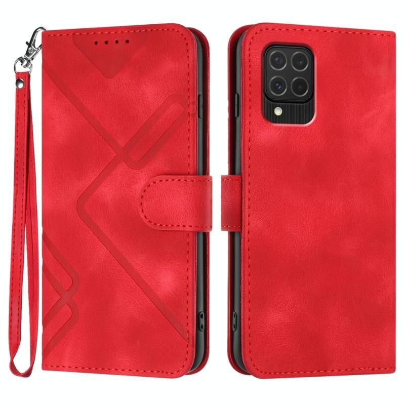 Για Samsung Galaxy M62 / F62 Γραμμή μοτίβο δέρμα αίσθηση δέρμα τηλέφωνο υπόθεση (Κόκκινο)