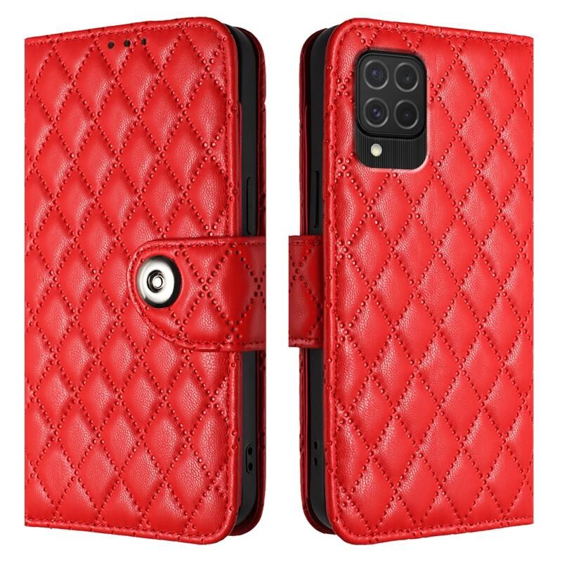 For Samsung Galaxy M62 / F62 Rhombic Texture Flip Leather Phone Case with Lanyard(Red)