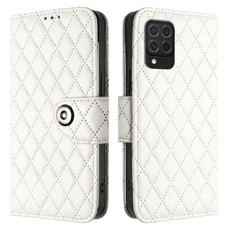 For Samsung Galaxy M62 / F62 Rhombic Texture Flip Leather Phone Case with Lanyard(White)