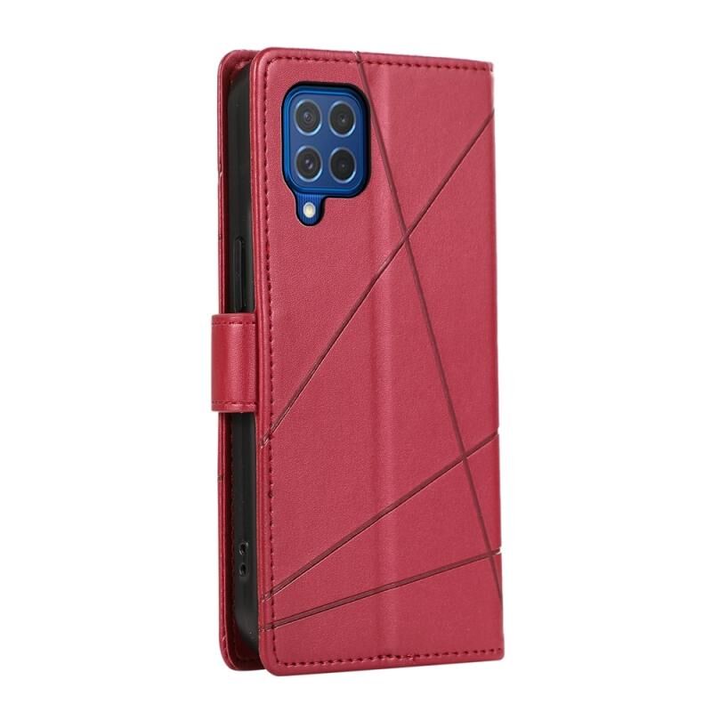 Θήκη τηλεφώνου Samsung Galaxy M62 από γνήσιο δέρμα PU με ανάγλυφη υφή και λεπτομέρειες γραμμής (Μαύρο)