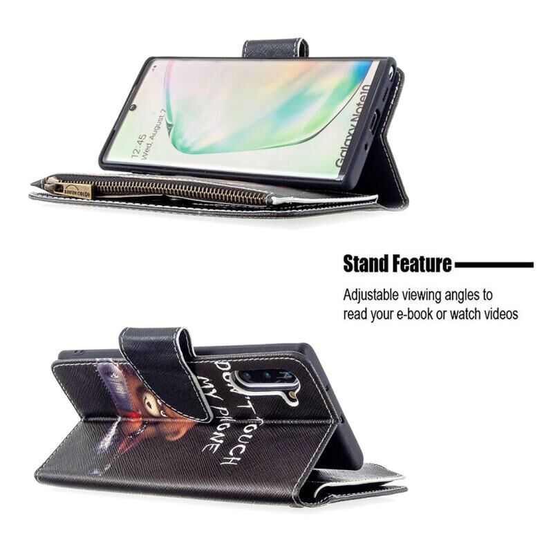 Θήκη Samsung Galaxy Note 10, Δερμάτινη οριζόντια με φερμουάρ, πολύχρωμο σχέδιο, με βάση & θήκες για κάρτες & πορτοφόλι (Αρκούδα)