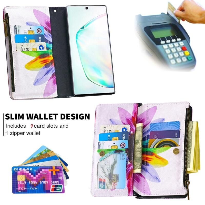 Θήκη δέρματος οριζόντιας αναδίπλωσης με φερμουάρ και σχέδιο πολύχρωμης ζωγραφικής για Samsung Galaxy Note 10 με βάση για κάρτες & θήκη πορτοφολιού (Κόκκινο)